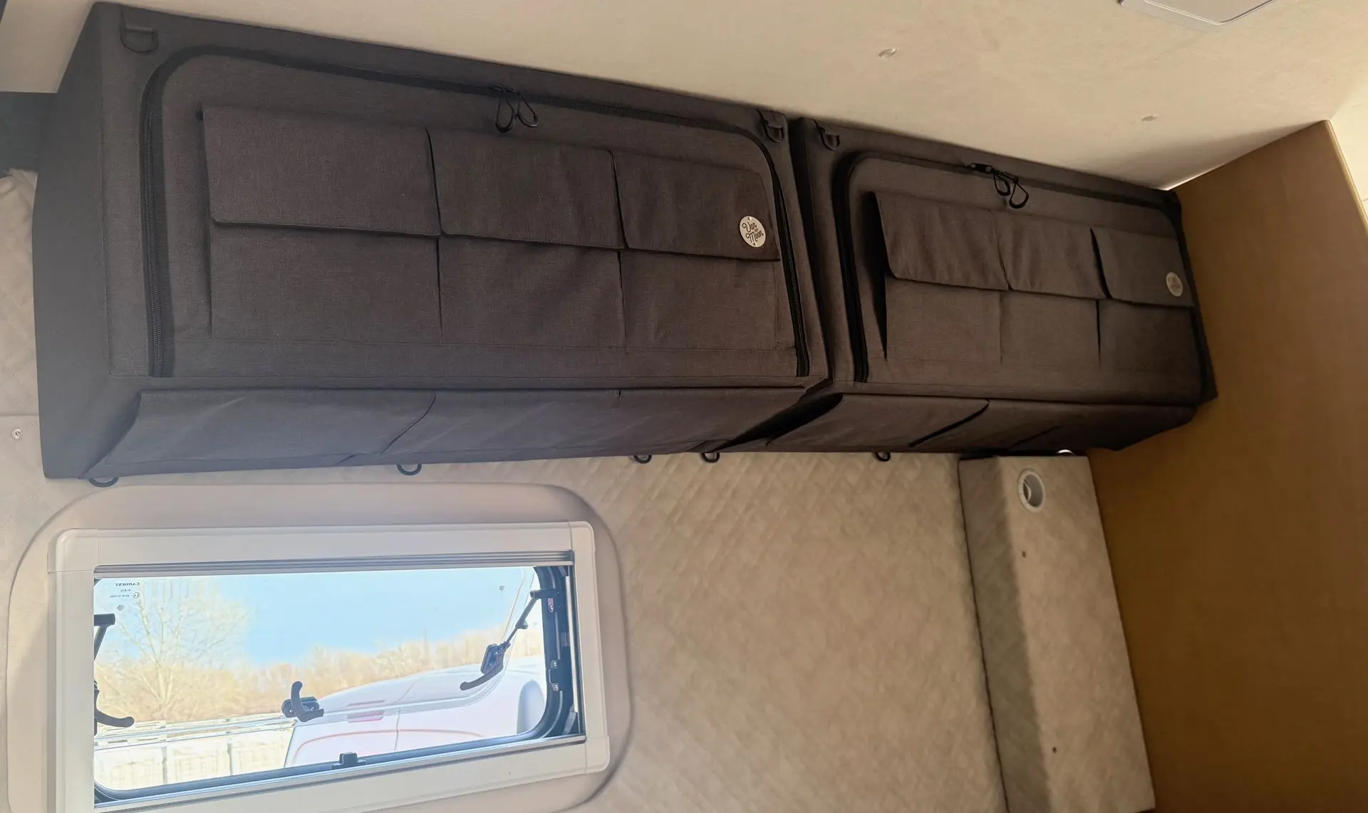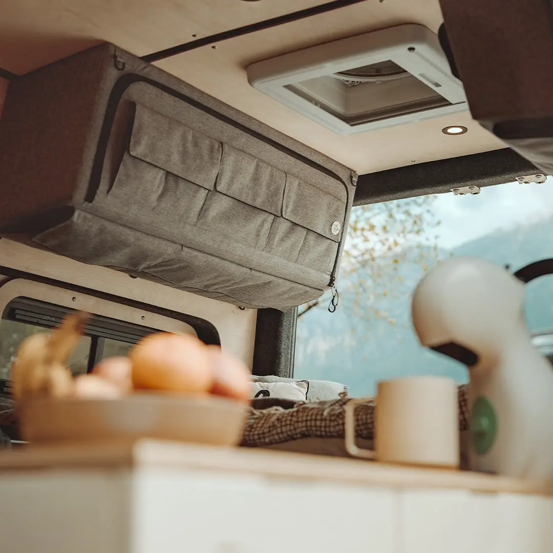 Знаете ли онова усещане, когато ставате нощем и се удряте в ъгъла на горния шкаф? Moon Box е облечен в пяна и водоустойчива тапицерия. Мек отвън, здрав отвътре. Ъглите на мебелите болят — без значение от материала — но тук са омекотени. При рязко спиране или на лош път, това е разликата между синка и „нищо не се е случило".
