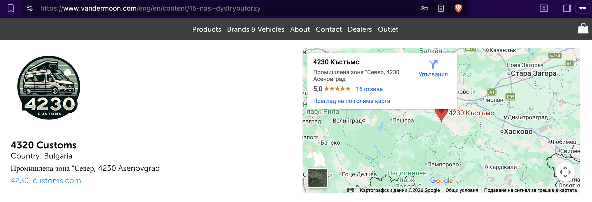Вече сме на картата с партньорите им — наред с дистрибутори от САЩ, Германия, Франция, Великобритания, Испания, Швейцария и още десетина страни. А нашият пин е точно там, където му е мястото — в Асеновград.